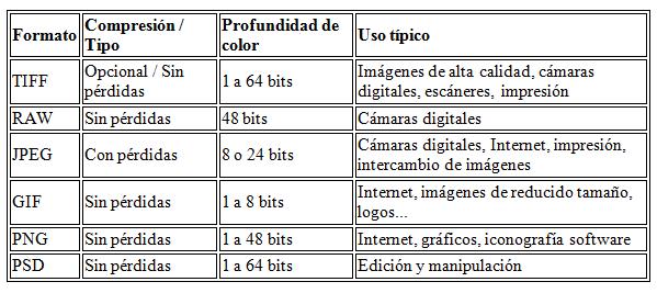 PSD (Extensión de los ficheros creado por Photoshop): se trata del formato nativo del conocido programa de retoque fotográfico Photoshop. Admite capas, texto y almacena el estado de edición / manipulación en que puede haber quedado una imagen. Permite almacenar las imágenes con la calidad más alta, aunque a costa del uso de un gran espacio en disco.